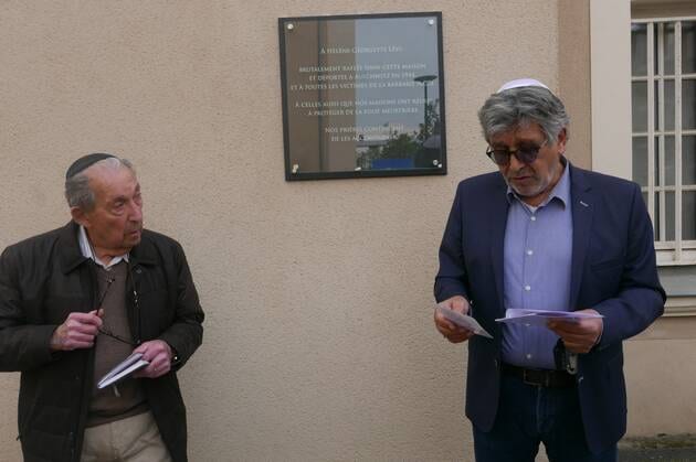 Devant la plaque hommage à Georgette-Hélène Lévi, Jonathan Berdugo, actuel président de la communauté juive lit le kaddish, la prière des endeuillés | OUEST-FRANCE