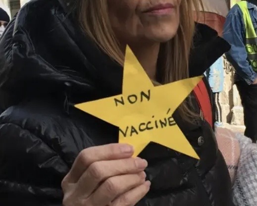 Les quarante-cinq manifestants du cortège de Convergence citoyenne du Sud, à Avignon, samedi 27 février, auraient pu passer inaperçus. Sauf que certaines personnes arboraient fièrement une étoile jaune, barrée de la mention « non vacciné », établissant un parallèle entre la Shoah et les restrictions de libertés imposées par le gouvernement pour lutter contre l’épidémie de covid-19. Et plus particulièrement la possibilité de mettre en place un passeport vaccinal.