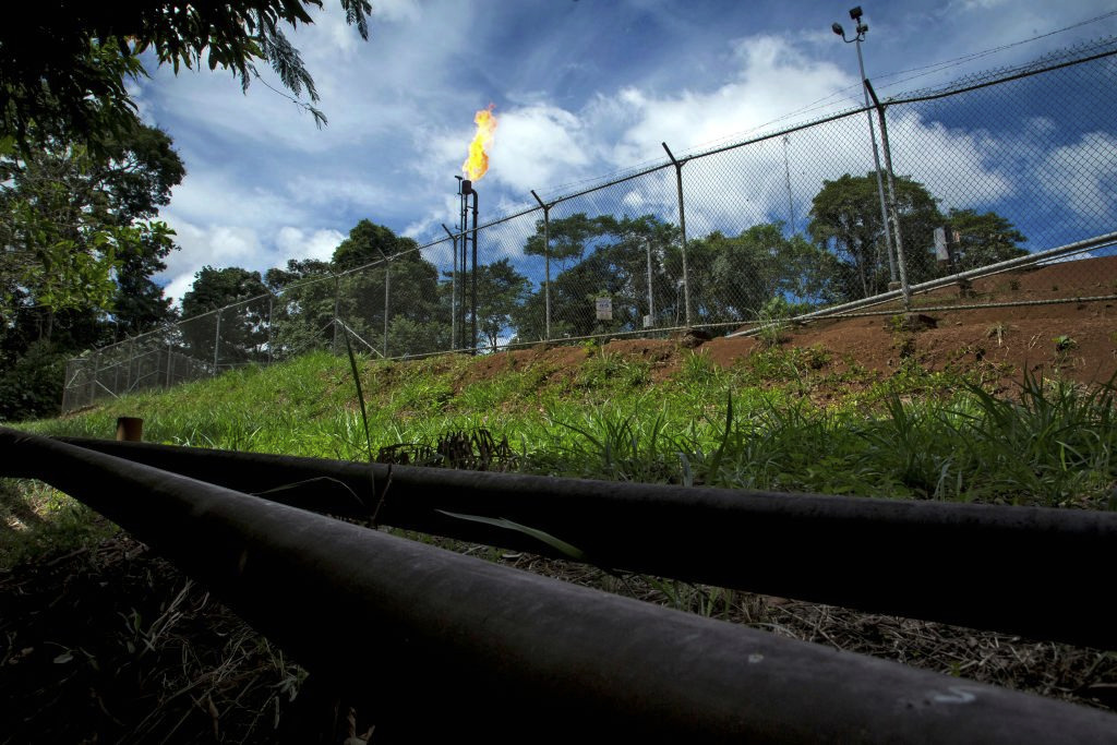 Sur la photo : un pipeline et une torche de gaz appartenant à la compagnie pétrolière chinoise PetroOriental, près du village indigène de Miwuaguno, dans la forêt amazonienne, en Équateur, le 10 décembre 2020. (Photo de Cristina Vega Rhor/AFP via Getty Images)