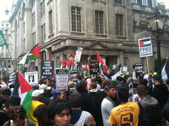 Crédit photo : Drdrewlondon / Flickr Manifestation devant l’ambassade d’Israël à Londres.