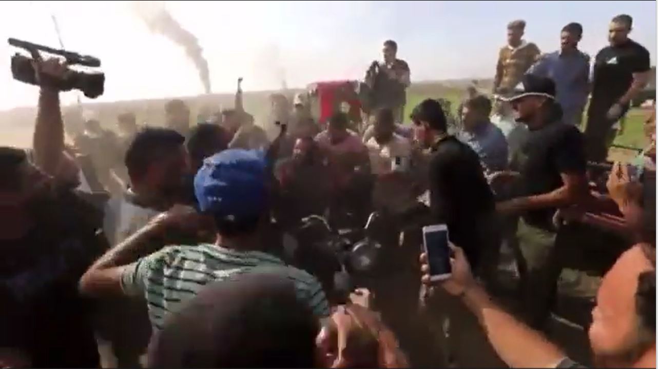Dans la vidéo, on peut voir une caméra professionnelle survolant une foule palestinienne alors que son opérateur tente nonchalamment de se concentrer sur Yarden Bibas terrifié, qui est fermement retenu sur une moto au milieu de la scène chaotique.