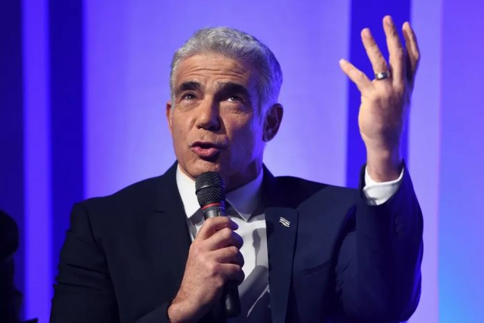 Gili Yaari/Flash90 Le ministre israélien des Affaires étrangères, Yaïr Lapid, lors d’une conférence du parti Yesh Atid, à Shefayim, le 22 septembre 2021