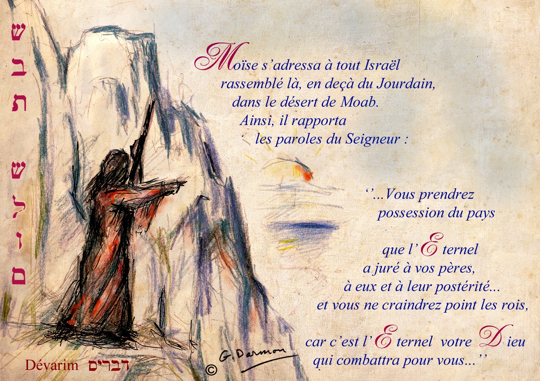 La parasha de Devarim reprend toute l’histoire – en quelque sorte – des territoires désignés comme possession d’Abraham et sa descendance dès la genèse de l’humanité. Ces terres que l’Eternel a désignées à Abraham depuis son départ de son pays natal appartenaient déjà à des peuples, des tribus. Cependant, HaShem, dès avant la création du monde, avait prévu toute l’histoire de cette région (et des autres régions du monde évidemment) : les Sages nous enseignent en effet que les exils ont été décrétés avant même que ne soit réellement créé le monde puisque les termes de Tohu et Bohu, ténèbres (hoshekh) et tehom (abime) sont cités dans le Pentateuque dès le deuxième verset de la Genèse puis l’ère messianique est citée en signalant qu’après ceci le souffle divin plane sur les eaux (verouah Elokim merahéfeth al pné hamayim) : Tohu représentant Babel, Bohou les Mèdes, Hoshekh pour les Grecs et Tehom pour Rome….