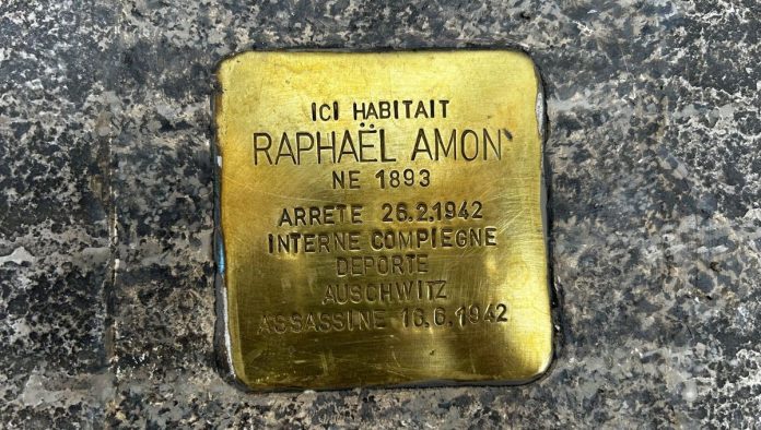 Le premier pavé officiellement dévoilé, c’est celui de Raphaël Amon. Ce père de famille, âgé de 49 ans au moment de son arrestation, vivait avec sa femme et ses cinq enfants au 9 rue du Bourg, au-dessus de sa boutique. C’est donc devant cette adresse qu’a été posé ce pavé de la mémoire. « Le but du projet, c’était de reconstituer son histoire, pour savoir qui il était en tant qu’homme : son caractère, sa vie, sa façon de se comporter avec sa famille », explique-t-elle.