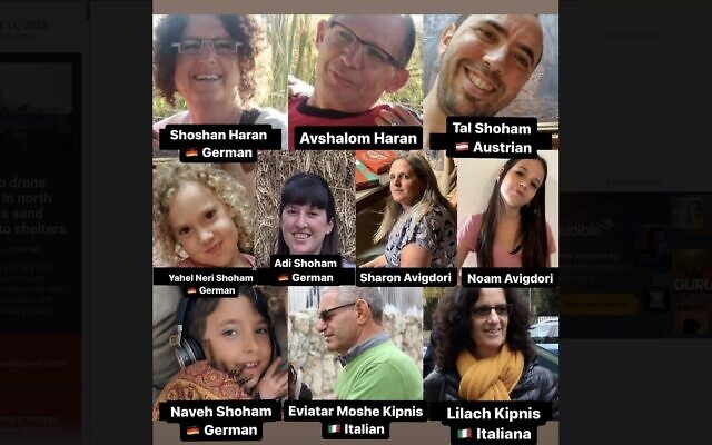 La famille, qui réside en Allemagne, aurait été prise en otage. Trois petites victimes, Yahel Neri Shoham, 3 ans, Haveh Shoham, 8 ans, et Noam Avigdori, 12 ans, font partie du lot.
