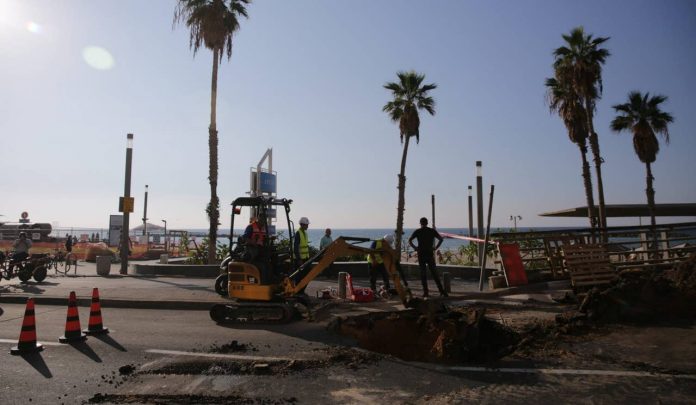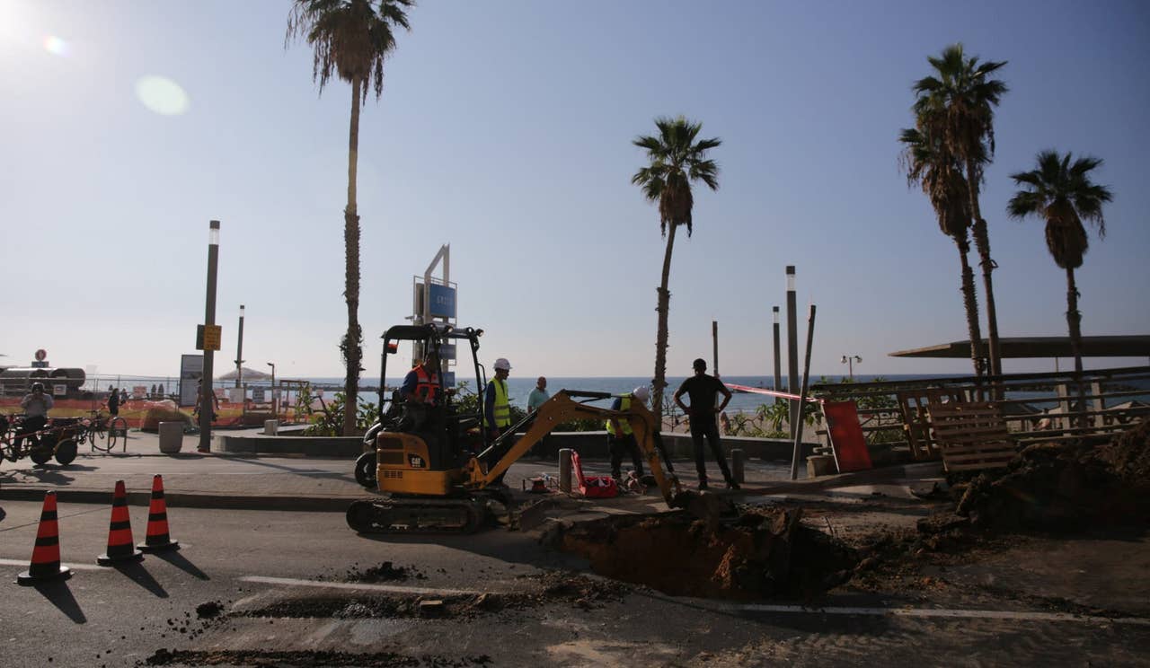 Un effondrement local a eu lieu en plein milieu de la Tayeleth, la grande promenade de Tel-Aviv, jouxtant le front de mer. La rue Herbert Samuel ( le nom de la rue) a été bloquée.
