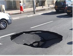 Ce trou a été causé à la suite d’un mauvais raccordement à l’égout principal qui longe le tracé de la route avec l’une des évacuations d’un hôtel à proximité de la conduite. Les eaux usées se sont infiltrées, engendrant une dissolution au voisinage de l’égout ce qui a créé un grand vide sous la chaussée, qui a cédé brutalement. La Société Mei Avivim travaille à la réparation des dommages. Cela consiste à réparer d’abord les réseaux sous voirie, à faire une reconnaissance de la zone qui a connu cette dissolution, puis à la combler avec un mélange de sables et ciment liquide que l’on appelle coulis de ciment, avant de refaire la chaussée. Les travaux se poursuivront toute la nuit, et sans doute pendant quelques jours. La circulation des véhicules dans le secteur devrait reprendre demain matin partiellement, avant la fin des travaux de réparation.