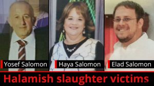 Yossef Salomon, 70 ans, et ses deux enfants, Haya et Elad Salomon, âgées respectivement de 46 ans et 36 ans, ont été poignardés à mort par un terroriste de 19 ans, qui était rentré dans la maison familiale dans l’implantation de Halamish, où une dizaine de personnes s’étaient réunies pour célébrer la naissance d’un petit-enfant lors du traditionnel repas du Shabbat vendredi soir.