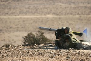 Illustration : Des soldats israéliens lançant un missile guidé anti-char Spike lors d’un exercice d’entraînement. (Crédit : Rafael Advanced Defense Systems)