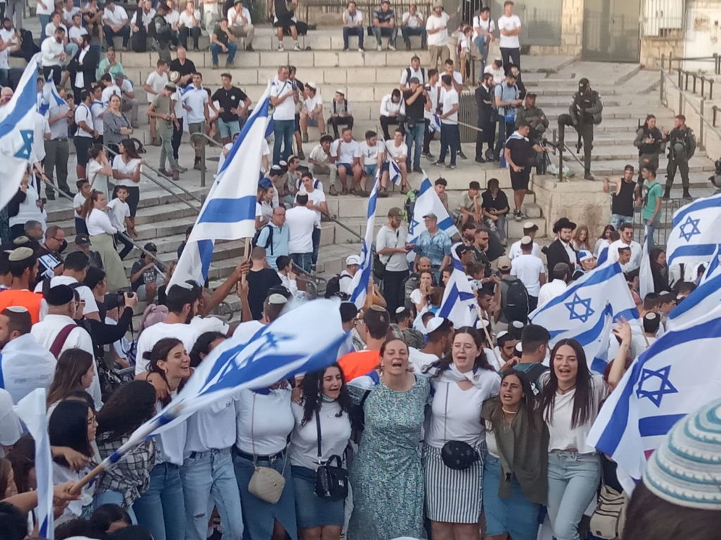 Depuis bientôt trente ans que j’ai le privilège de vivre à Jérusalem, ville où se sont rencontrés mes grands-parents et où est née ma mère, je participe chaque année au traditionnel défilé des drapeaux du Yom Yeroushalayim, célébrant la réunification de la ville en 1967. Pourtant je n’ai jamais ressenti aussi fortement que cette année la joie particulière à cette fête, joie incomparable qu’on n’éprouve jamais aussi pleinement qu’en ce jour particulier. Impressions recueillies Yom Yeroushalayim 5782.