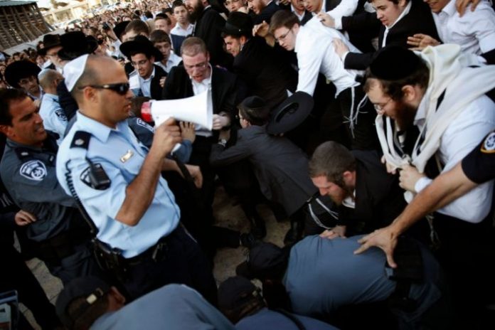 La police a affirmé avoir été attaquée par des hommes ultra-orthodoxes, qui leur ont également jeté des pierres, blessant sept agents, selon le site d’informations Walla.
