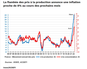 Et ce, d’autant que l’inflation ne cesse et ne cessera de progresser pendant encore plusieurs mois. En avril, le glissement annuel des prix à la consommation en France a d’ores et déjà atteint 4,8%, un sommet depuis novembre 1985. Selon les normes européennes, l’inflation française atteint même 5,4%.