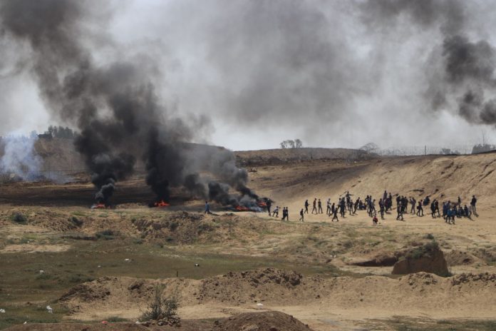 La plupart des manifestants ont gardé leurs distances par rapport à la frontière, bien que de petits groupes d’activistes se soient approchés de la clôture et aient jeté des pierres et des explosifs en direction des troupes israéliennes de l’autre côté. Les forces ont tiré des gaz lacrymogènes et ouvert le feu, tuant quatre Palestiniens et en blessant 64.
