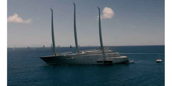 Tous ceux qui l’ont croisé en Méditerranée se souviennent de son gigantisme, de sa forme asymétrique et de ses mâts futuristes. Le Sailing Yacht « A », un yacht à moteur à trois mâts, qualifié de plus grand voilier du monde, ressemble plutôt à un navire de guerre. Avec ses 143m de longueur, ce bateau conçu avec l’aide du designer Philippe Starck, fait à lui seul plus de la moitié du porte-avions Charles de Gaulle…