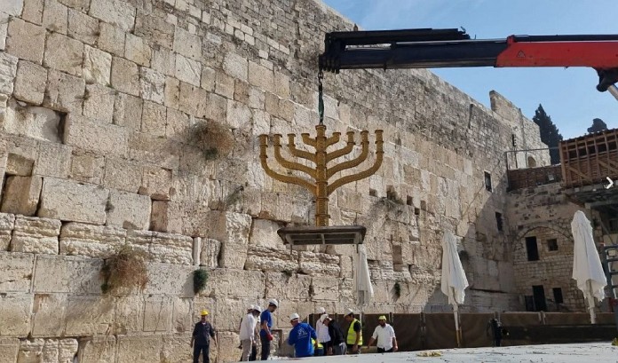 | La traditionnelle ménorah de Hanoukka du Mur Occidental a été installée dimanche matin à Jérusalem avant la fête de huit jours qui commence mercredi soir.