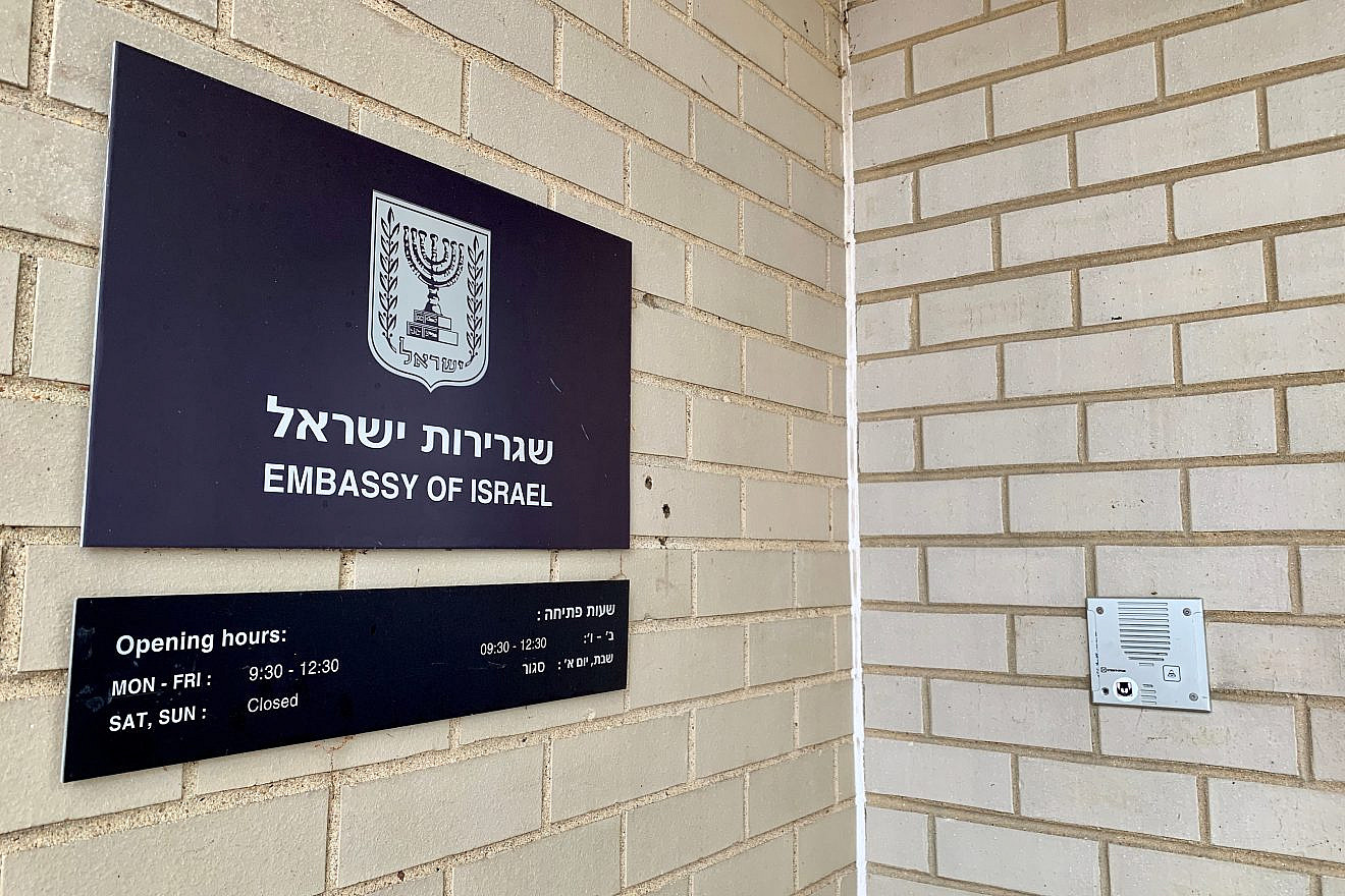 L’entrée de l’ambassade israélienne à Washington, DC, le 4 mai 2019. Crédit : Shutterstock/DCStockPhotography.