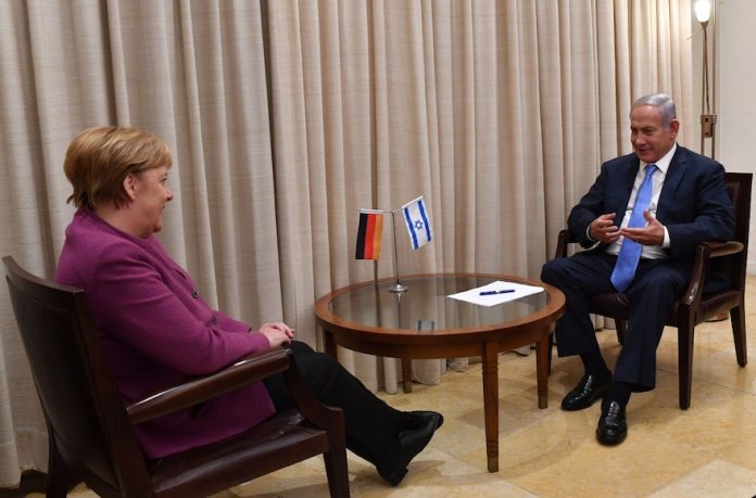 Entretien de la chancelière allemande Angela Merkel avec le Premier ministre israélien Benjamin Netanyahu à Jérusalem, le 3 octobre 2018. (Kobi Gideon / GPO).