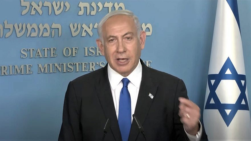 Le Premier ministre israélien Benjamin Netanyahu s’adresse à la nation au sujet de la réforme judiciaire le 23 mars 2023. Source : Capture d’écran.