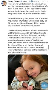 L’ambassadeur d’Israël à l’ONU, Danny Danon a posté :
