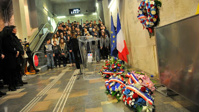 Des gerbes ont été déposées devant la stèle à la mémoire des enfants juifs déportés de Nîmes et du Gard (ci-dessus), dans le hall de la gare de Nîmes, en présence de Didier Lauga, le préfet du Gard…….Détails…….