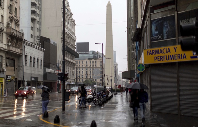 À Buenos Aires, au milieu d’une matinée dominicale pluvieuse, les rues étaient peu animées même si quelques supermarchés et d’autres commerces étaient ouverts, fonctionnant grâce à des générateurs.