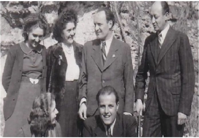 A droite, les trois hommes cachés et sauvés par la famille Malé à Pithiviers de 1942 à la Libération. A gauche, les trois filles du couplé Malé. Leurs parents recevront la médaille des Justes. – DR