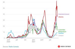 En Alberta, ainsi qu’en Colombie-Britannique et en Saskatchewan – où les restrictions ont été largement éliminées cet été – voient désormais des records de cas et d’hospitalisations. Nous avons eu une expérience naturelle avec l’Alberta et nous voyons les résultats catastrophiques