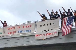 Brandissant des panneaux sur lesquels on pouvait lire « Kanye is right about the jews » (« Kanye a raison à propos des Juifs », en français), ils ont effectué des saluts nazis en direction des automobilistes..