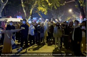 À Pékin, des étudiants ont brandi des pancartes vierges, symboles de défiance contre la censure. À Shanghai, reconfinée deux mois au printemps, “on a entendu en marge d’un rassemblement en hommage aux victimes d’Urumqi des gens demander le départ du président et du Parti communiste”, au pouvoir depuis 1949. Plusieurs personnes ont été arrêtées dans la foulée.