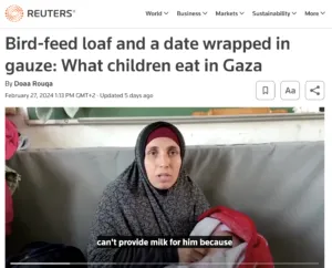 Au contraire, pas plus tard que le 27 février, Reuters a continué à donner des articles et des crédits photographiques à un sympathisant du Hamas qui semble apparemment s’amuser du massacre génocidaire de Juifs innocents.