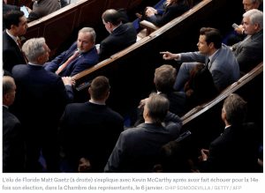 Mais, en coulisses, l’agacement républicain s’orientait aussi contre Kevin McCarthy, en raison des concessions envisagées et alors que le candidat persistait à s’estimer seul candidat légitime à la fonction de speaker. Les tractations sont substantielles à la vie parlementaire. Mais Kevin McCarthy, lui, a quasiment tout cédé, au risque de saboter la fonction même à laquelle il postule et de la vider de son autorité, même si ses soutiens assurent du contraire. Dorénavant, un seul élu suffira pour imposer un vote de confiance sur la personne du speaker, une règle qui a longtemps existé dans le passé, mais qui prend une tout autre signification à l’ère MAGA. McCarthy espérait s’en tenir à une barre de cinq élus. Il aurait aussi accepté d’accorder à l’ultradroite des postes très prisés au sein de commissions, comme celle sur les règles de la Chambre. Ces distributions de faveurs se préciseront dans les jours prochains.