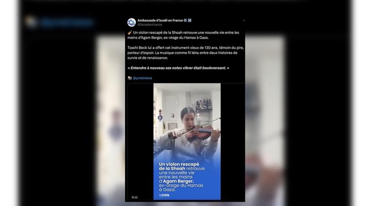 L’ambassade israélienne a relayé ce dimanche soir une vidéo sur son compte X dans laquelle Agam Berger, ex-otage du Hamas, joue un morceau de violon. L’instrument, vieux de 130 ans, fait figure de témoin silencieux de la Shoah.