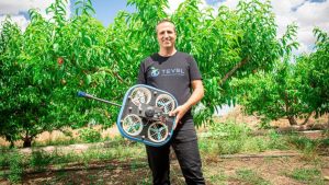 La société israélienne Tevel Aerobotics Technologies a développé des robots autonomes volants (FAR) qui décollent d’une station de base, ne cueillent que les fruits mûrs de l’arbre et les abaissent doucement pour la cueillette.